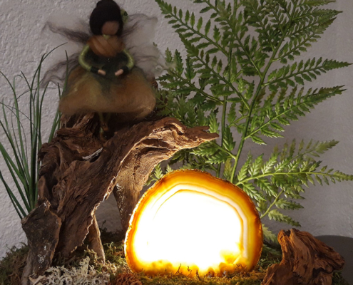 Fee mit Achatscheibe beleuchtet